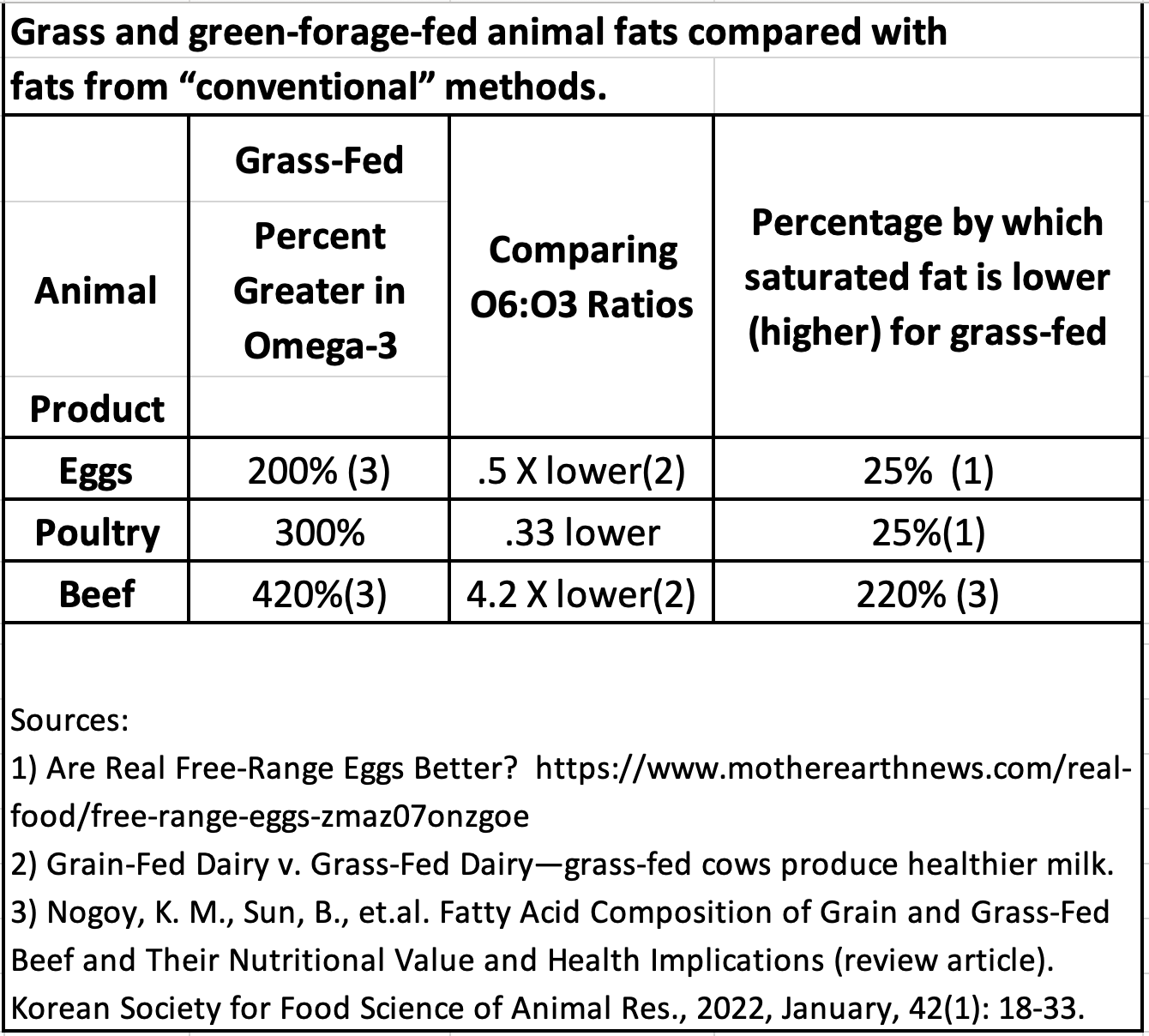 - Highlighted blue are animal fats: high in saturated fats; have healthy (low) O6:O3 ratios, and mid-range monounsaturated fats.